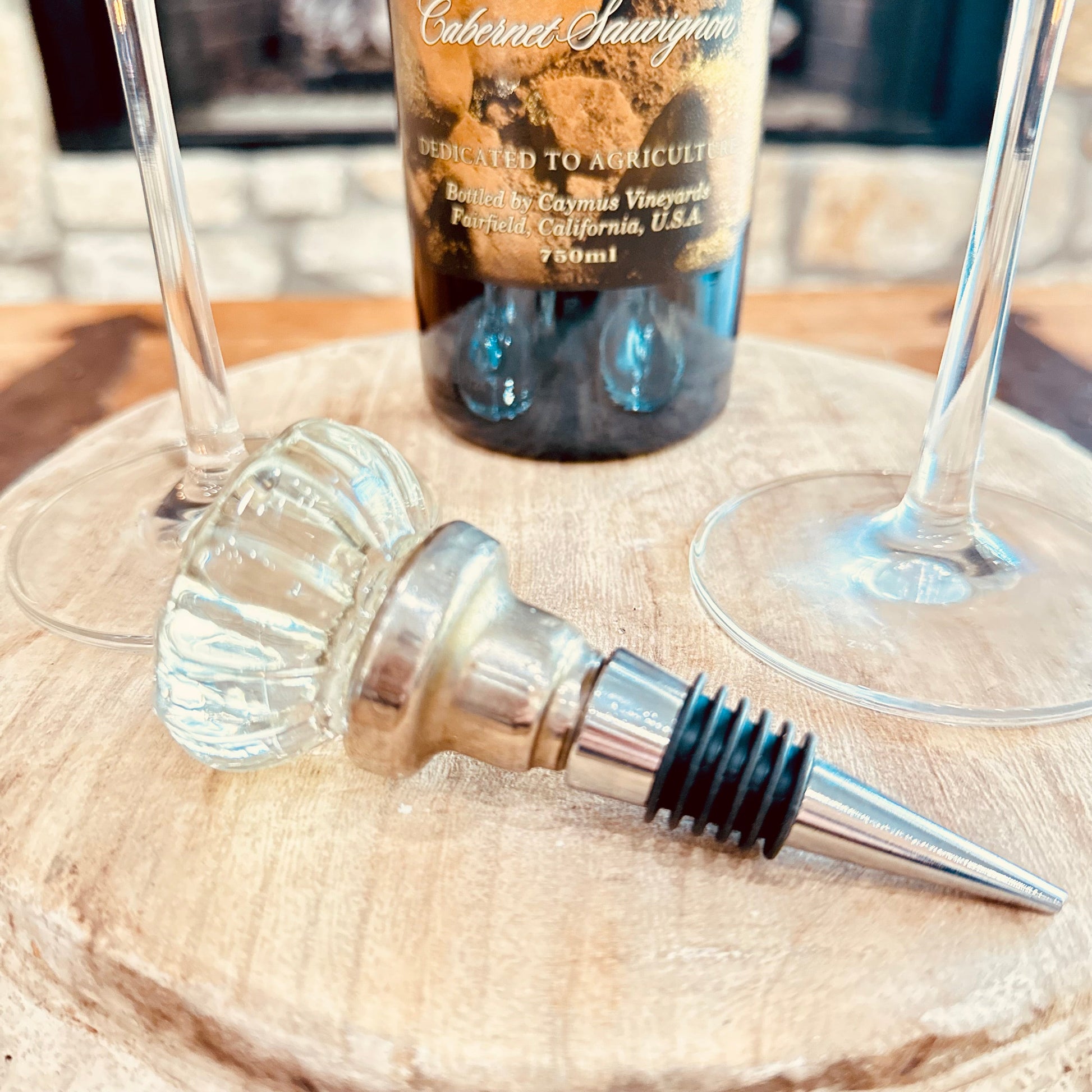 Add some vintage charm to your wine collection with these handcrafted glass door knob wine stoppers. Made in Texas, each piece is unique and perfect for preserving your favorite bottles. Say goodbye to spills and hello to effortless elegance with these wine stoppers.